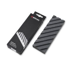 Aşınmayı önlemek için enine oluklara sahip bileme taşlarını düzleştirmek/düzeltmek için kullanılan bir düzleştirme taşıdır. Hem doğal hem de sentetik bileme taşları, bileme sırasında zamanla çalışma yüzeyinde çukurlaşarak içe doğru bir eğriliğe neden olur. Düzeltme taşı, düz/düz bir yüzey üretmek veya bu yüzeyi korumak için kullanılır. İkinci bir ürün uygulaması olarak, düzeltme taşı mevcut bir bileme taşındaki taşlama tortusunu ovmak için de kullanılabilir. Aşındırıcı kum ile taşlama yapılırken “yuvarlanan tane” olarak adlandırılan yöntem kullanılır. Aşındırıcı kum ile keskinlik, çıplak bileme taşı yüzeyine kıyasla aynı kum ile daha hızlı ve daha ince üretilebilir. Ürün hangi bileme taşları için uygun mudur? Her kumdaki Japon su taşları ve yumuşak bağlanmış doğal taşlar (örn. Belçika yonga/kotikülü) için uygundur. Arkansas taşları, yapay seramik taşlar ve elmas taşlama plakaları için uygun değildir. Bileme taşını ve düzeltme taşını yeterli su ile ıslatın. İstenilen sonuç elde edilene kadar bileme taşını ve düzeltme taşını dairesel hareketlerle birbirine sürtün. Tüm işlem boyunca her iki taşı da ıslak tutun.