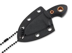 Kullanışlı bir yol arkadaşı olan Böker Plus Gnome all Black Copper (02BO084), kydex kılıfıyla sunulmaktadır. Birlikte verilen top zincir, Gnome’un boyun bıçağı olarak kullanılma iddiasını vurgulamaktadır.