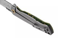 Sapın oluşturulmasında titanyum ve karbon fiber kullanılarak sağlamlık, hafiflik ve uçağın sahip olduğu görünüm çakıya taşınmıştır. Net hatlarına rağmen, ergonomik girintiler sayesinde, ele rahatça oturan sapın ön yüzü; ‘‘Fat Carbon Materials’’ tarafından imal edilen “Toxic Storm” (zehirli fırtına) adındaki karbon fiberdir. Üç renk (sarı, yeşil ve gri) ve tonlarının yer aldığı bu özel malzeme, Alman Hava Kuvvetleri’nin o zamanki uçakları için tipik olan yamalı kamuflaj desenine çok benzerdir. Titanyumdan imal edilen arka kanat ve kilidin temas noktasında özenle yerleştirilmiş sert metal, güvenli ve güçlü bir yapı oluşturmaktadır. Alüminyum (6061 Al) ara parça, siyah renktedir. Tek parça titanyumdan işlenerek estetik biçimde imal edilen cep klipsinin (çıkarılabilir) ucuna seramik bir top yerleştirilmiştir. Böylelikle hem sapın çizilmesinin önüne geçilmiştir hem de klipsin daha sağlıklı (sıkıştırma görevini iyi yaparak ve takılmadan) kullanılabilmesi sağlanmıştır. Çakı parçalarının bir araya getirilmesinde karartılmış cıvatalardan faydalanılmıştır. Pivot bağlantı elemanının pirinç olarak kullanılması, çakının görsel zenginliğine uyumlu bir katkı olmuştur. Sapın dip kısmının arkasında bir kordon deliği (lanyard hole) de bulunmaktadır.