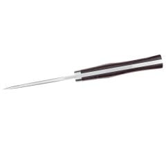 Sadece yetenek ve güzel çizgiler sunmakla kalmayıp aynı zamanda kullanışlı olan özel bıçaklar yapmaktan gurur duyuyoruz. SG2 çekirdekli, iyi işlenmiş lamine toz çelik (3G) bıçak sadece güzel olmakla kalmıyor, aynı zamanda güçlü ve keskinliğini gerçekten çok iyi koruyor. Bu nedenle, bu tamamen el yapımı av bıçağının, kullanım dışında cam bir vitrinde durmayacağını umuyoruz !