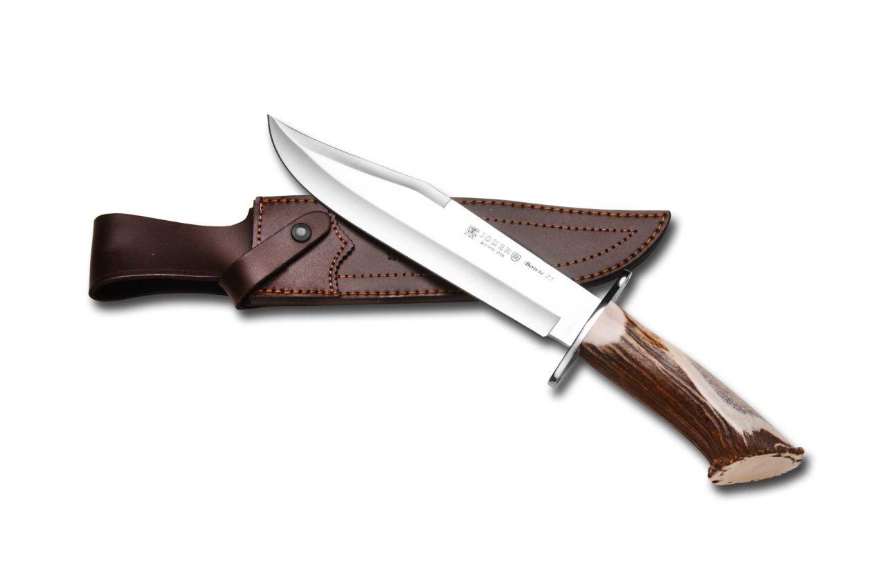 Orijini Albacete olan bu şık ve işlevsel bıçak, birinci sınıf deriden (kahverengi) imal edilen ve içine çıtçıtla sabitlendiği kılıfıyla sunulmaktadır.