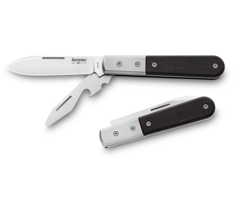 Lionsteel, tasarıma kendi yorumunu katmış ve Barlow’u 3 değişik ağız yapısıyla (111 kodlu, Roundhead ismini verdiği spear point; 112 kodlu Shuffler adını verdiği clip point ve 115 kodlu, Dom adını verdiği sheepsfoot) üretmiştir. Namlu çeliği olarak 3. nesil toz metal M390 kullanmıştır. Barlow’ların balçakları titanyumdur (gri, bronz ve mavi), astarları titanyumdur. Sap malzemeleri zeytin ağacı, mikarta, koç boynuzu, abanoz ağacı ( bu versiyonda olduğu gibi ) ve karbon fiber gibi seçkin malzemelerdir. Köşelerin kırılıp yuvarlatılması (sadece sap malzemesi, balçak ve astarı değil, namlu sırtını da içerecek bir yuvarlama söz konusudur) bir bütün görünüş arz edecek şekildedir. Bağlantı elemanları yıldız allen başlı cıvatadır.